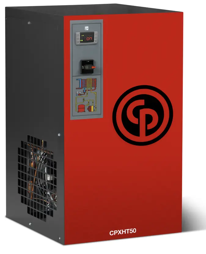 The CPXHT dryers are a perfect complement to the RCP line of reciprocating air compressors. With a maximum inlet temperature of 180 ̊F, no aftercooler is required. The CPXHT dryers are easy to install and have a compact design. Supplied with 115 Volt power means no special wiring is required and the space saving design incorporates refrigerated air dryer, moisture separator, and electronic water drain.