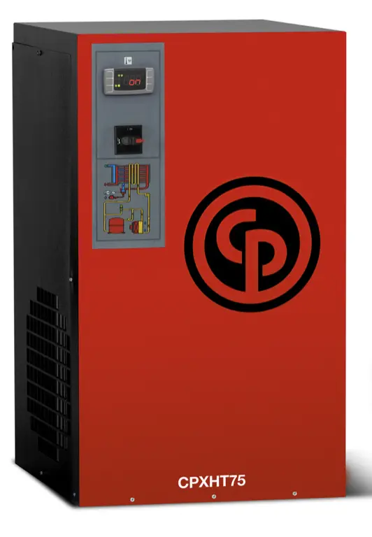 The CPXHT dryers are a perfect complement to the RCP line of reciprocating air compressors. With a maximum inlet temperature of 180 ̊F, no aftercooler is required. The CPXHT dryers are easy to install and have a compact design. Supplied with 115 Volt power means no special wiring is required and the space saving design incorporates refrigerated air dryer, moisture separator, and electronic water drain.