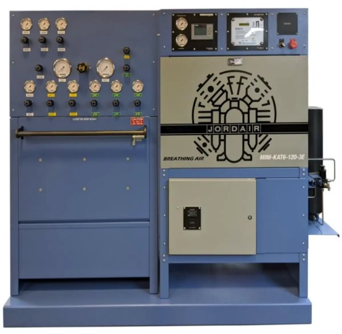 The 2021 MINI-KAT features a new identity with two tone colour and ease of service from the front and rear of the unit. The front control panel contains the TDE screen, oil and final pressure gauges and ESD shut down button. The CO monitor and optional Securus Moisture Monitor are located within the control panel for ease of operator monitoring. An upgrade is available to have an HMI real time display with pressure transmitters for oil and final pressure and a RDT readout of the final temperature. Many new features provide a service friendly and technically advanced design with the standard TDE display and the optional active HMI customer interface. The CRN filter system is mounted on the right side of the compressor for ease of service and cartridge change.